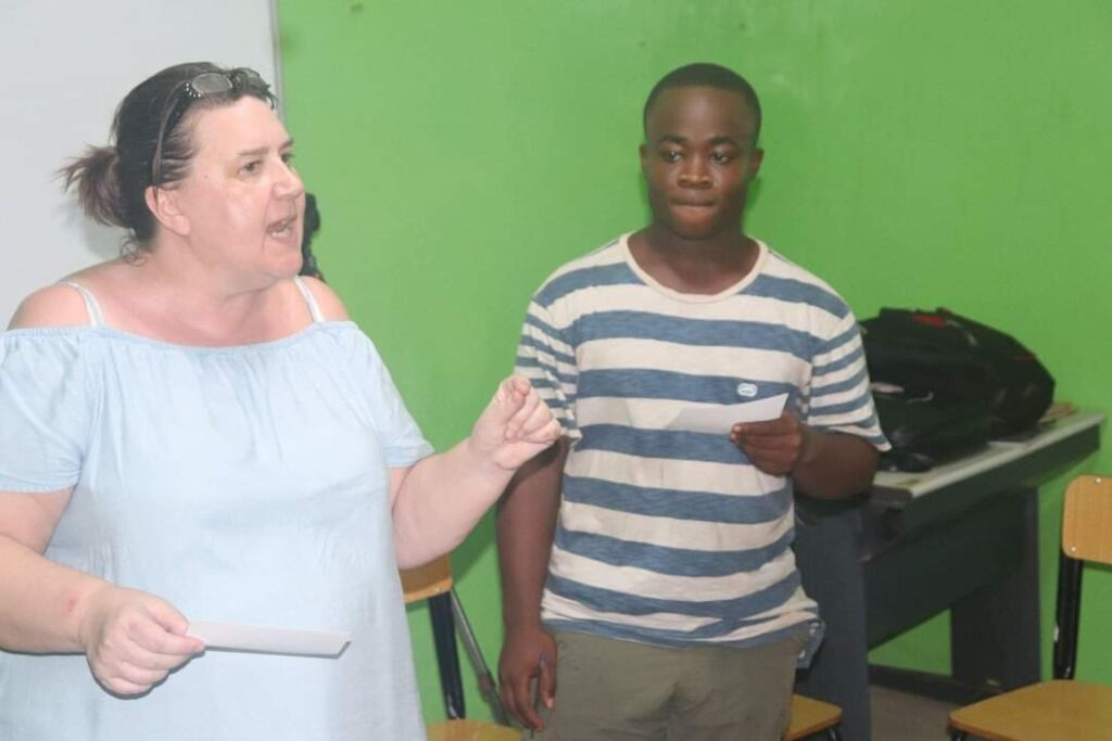 English is the official state language, but most of Liberia speaks Liberian colloquial. Liberian colloquial is mixture of slangs and creole widely spoken in public places and school campuses. Liberians tend to merge words, for example, “I na know” is used instead of “I don’t know,” and most plurals are created by adding the word “them” to the key word for example, “‘children them,’ ‘people them’, ‘student them.’” A Liberian high school student can more effectively communicate through written English than oral communication.